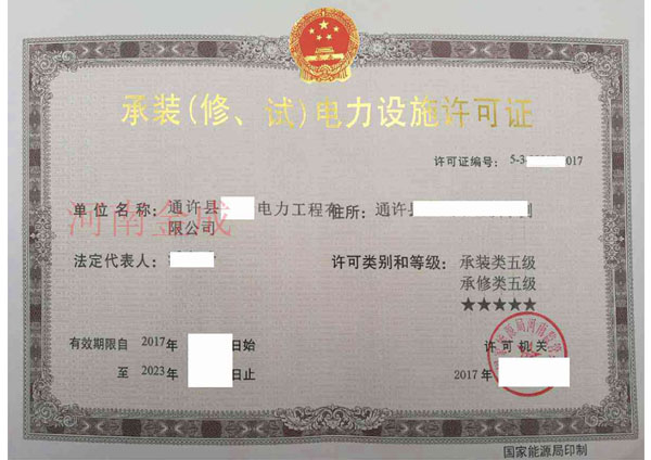 • 承裝(修、試)電力設施許可證