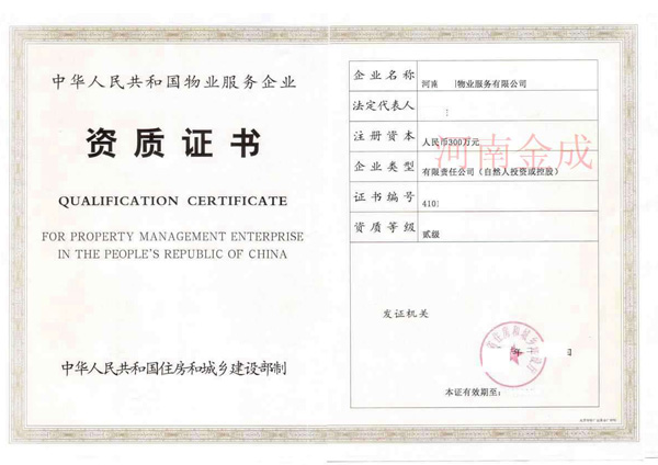 • 物業二級資質證書